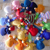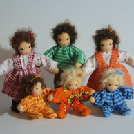 Alle meine Puppen und Mobile sind Unikate, die ich in meiner Werkstatt in liebevoller Handarbeit selbst gefertigt habe. Ich verwende nur hochwertige Materialien wie pflanzengefärbte Seide, Baumwollstoffe und schadstoffgeprüfte Schafwolle.